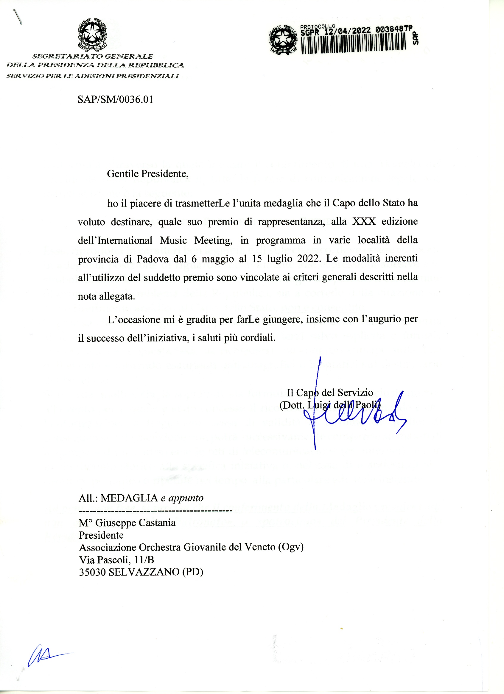Obbligo di trasparenza – ex Legge n. 124-2017 – Orchestra Giovanile del Veneto anno 2022