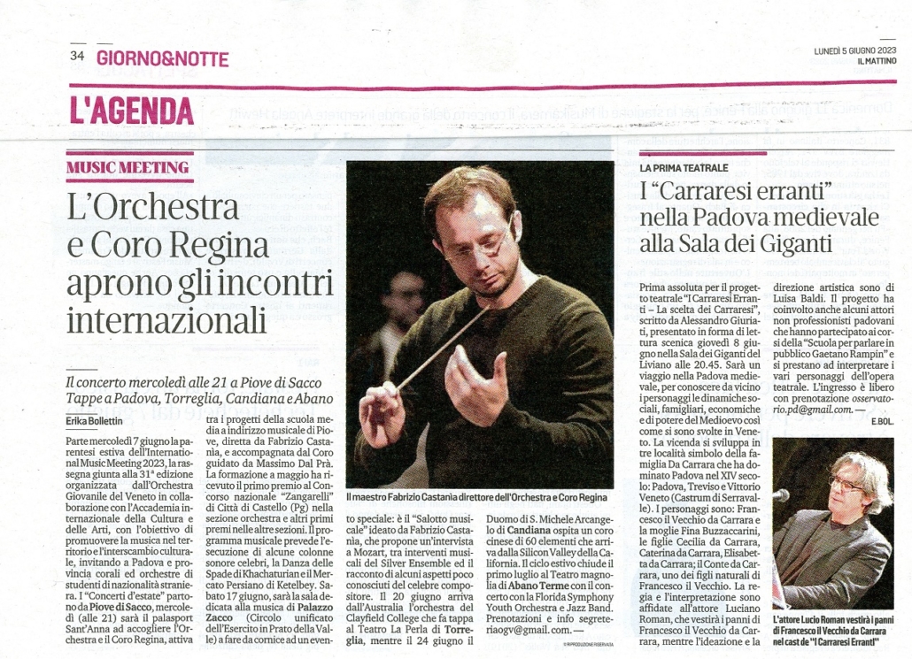 VIDEO CONCERTO DELLA JUGENDSINFONIEORCHESTER JSO DER KUNST UND MUSIKSCHULE BRUCHSAL, GERMANIA – Candiana 10 giugno 2022