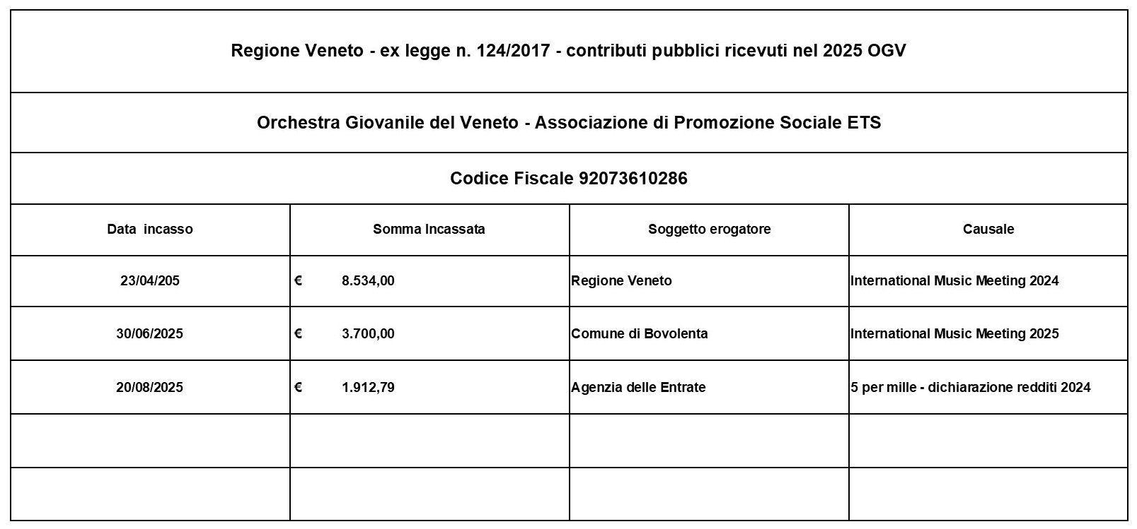 Pubblicazioni dei contributi pubblici percepiti nell’anno 2025