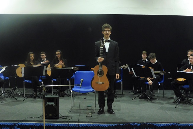 Domenica 9 dicembre 2018 alle ore 17.30 a Piove di Sacco, nell’Auditorium Comunale “Giovanni Paolo II”, Via Ortazzi 9. Concerto con l’Ensemble di Chitarre “Sesta in Re” dell’Orchestra Giovanile del Veneto, diretta da Francesco Maria Ranzato. Al concerto hanno partecipato Enrico Muscardin, chitarra solista nel concerto di Vivaldi con il quartetto d’archi “Le Dame” e Stefano Bertin, chitarra solista nel Vals Venezolano di Raul Borges.